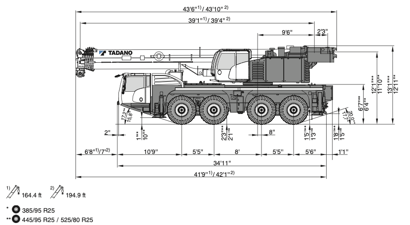 • Outrigger Bases: 26. 8 ft x 23.6 ft